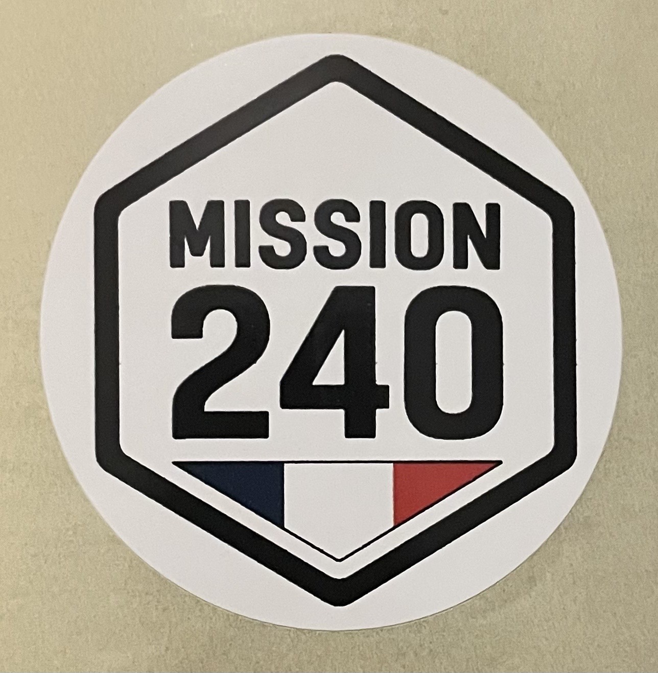 Pack de 5 stickers ronds Mission 240 (5 cm). Parfaits pour personnaliser voiture, gourde, téléphone, casque ou carnet. Qualité premium, impression durable.