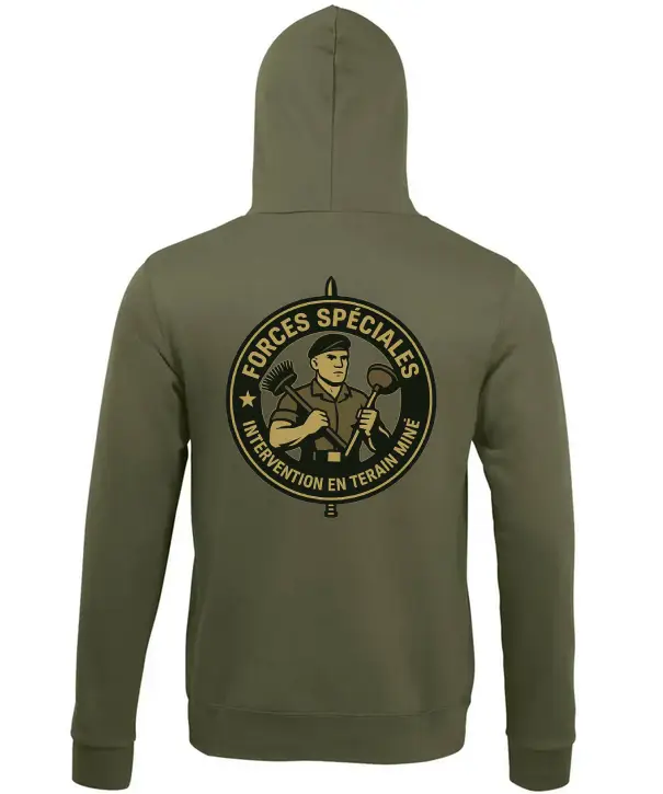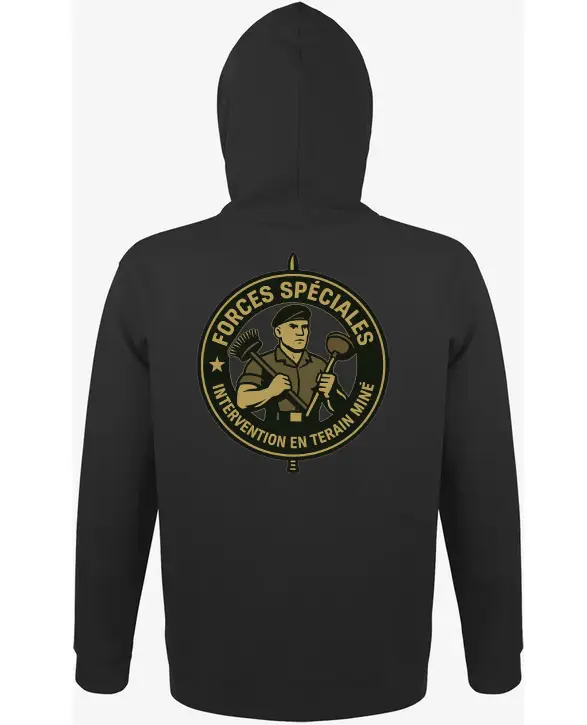 Pour les experts des terrains minés… qu’ils soient domestiques ou militaires. Sweat chaud, confortable et pratique, disponible en vert, noir ou army.