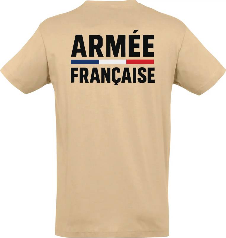 T-shirt premium en coton 100% Ringspun (145 g/m²), léger et confortable. Coloris sable avec marquage “Armée Française” au dos, accompagné du drapeau tricolore. Un modèle sobre et puissant, inspiré de l’esprit militaire