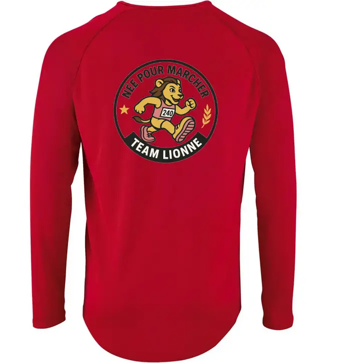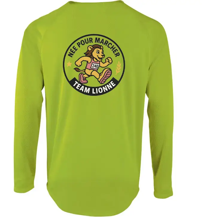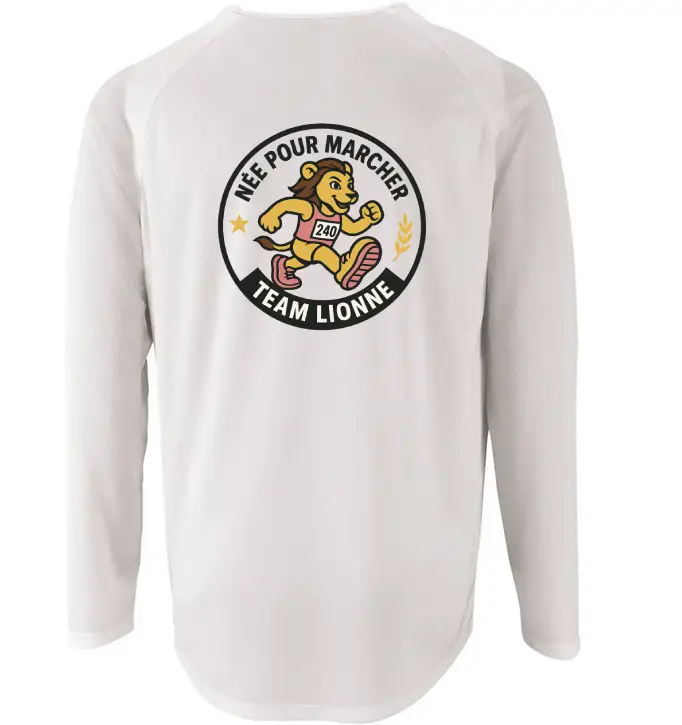 Le T-shirt manches longues Team Lionne met à l’honneur la force tranquille et la persévérance. Avec son slogan « Née pour marcher », il s’adresse à celles et ceux qui avancent avec détermination, pas après pas.