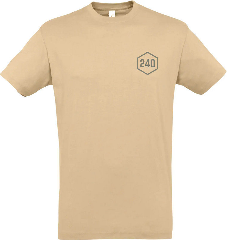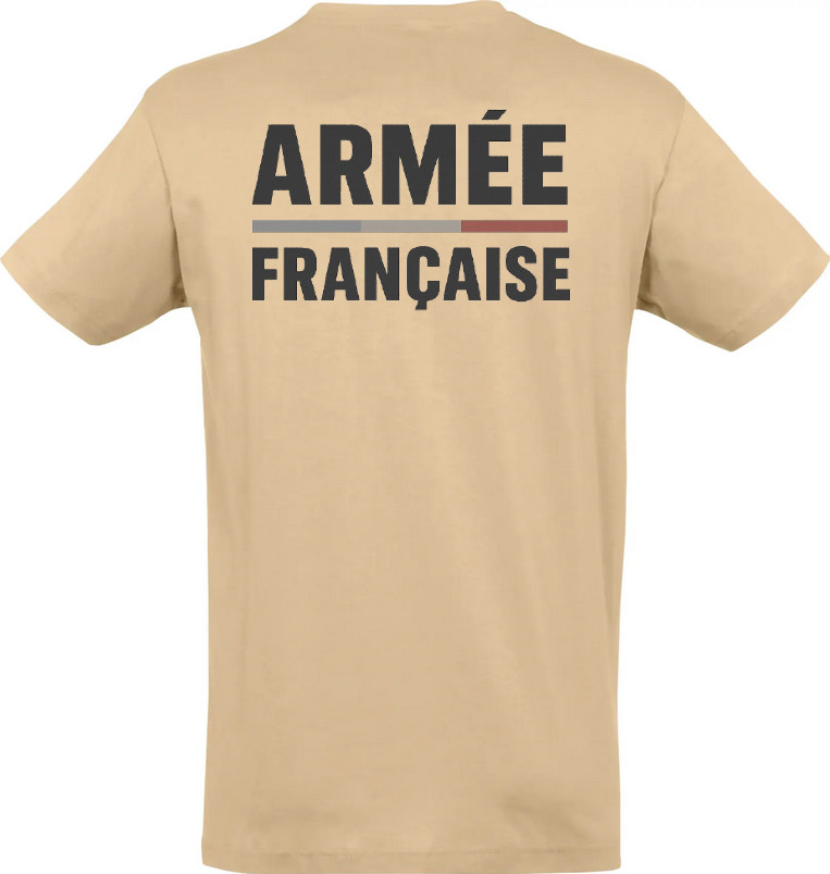 T-shirt beige militaire au design exclusif Mission 240. Inscription “Armée Française” au dos et logo 240 côté cœur. Confortable et résistant.
