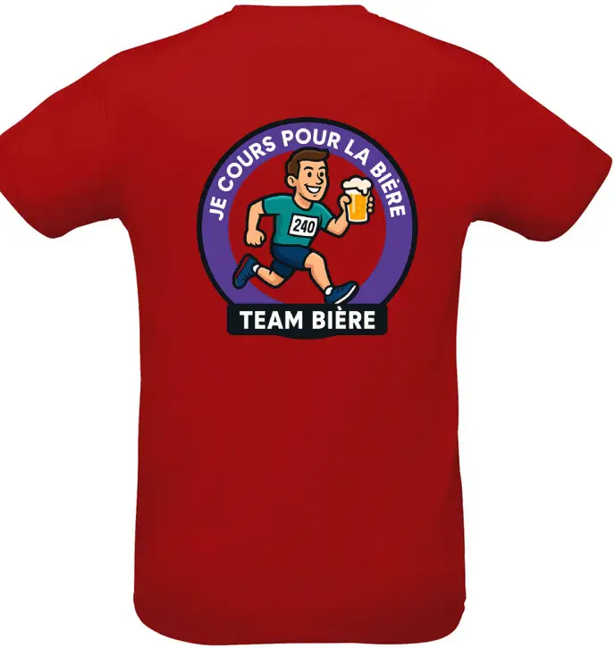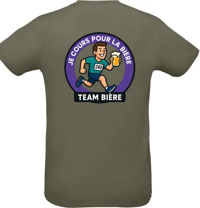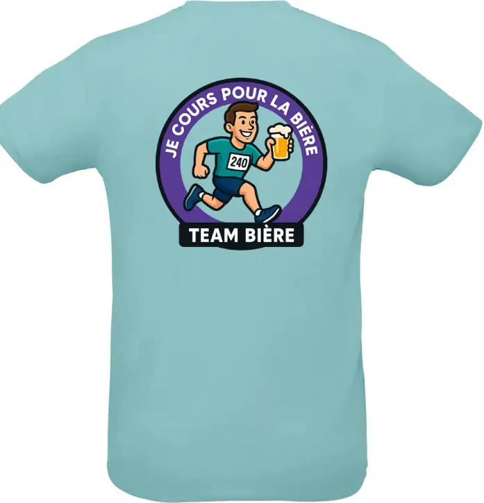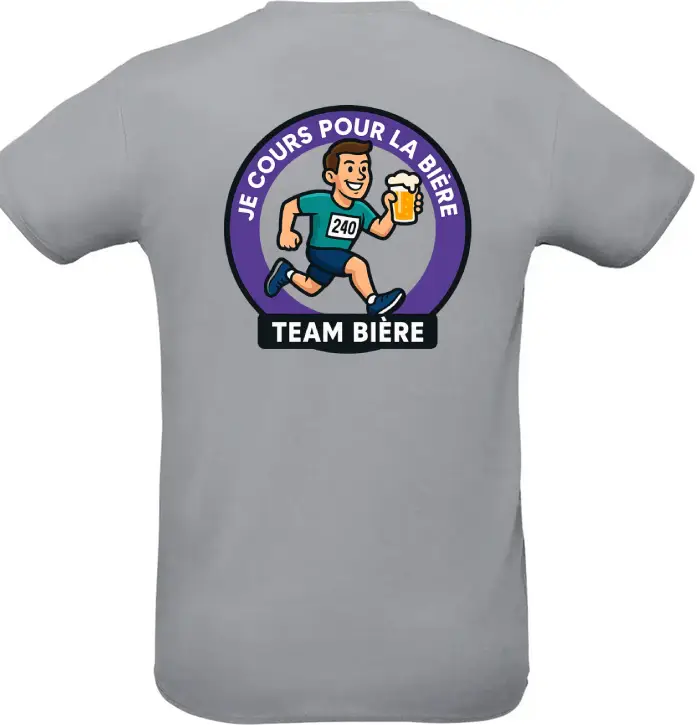 Rejoignez le Team Bière avec ce t-shirt fun et sportif !Un design premium avec le slogan « Je cours pour la bière » et le coureur au dossard 240 tenant fièrement sa pinte 🍺.Idéal pour vos sorties running, vos after-runs entre amis ou comme cadeau original.