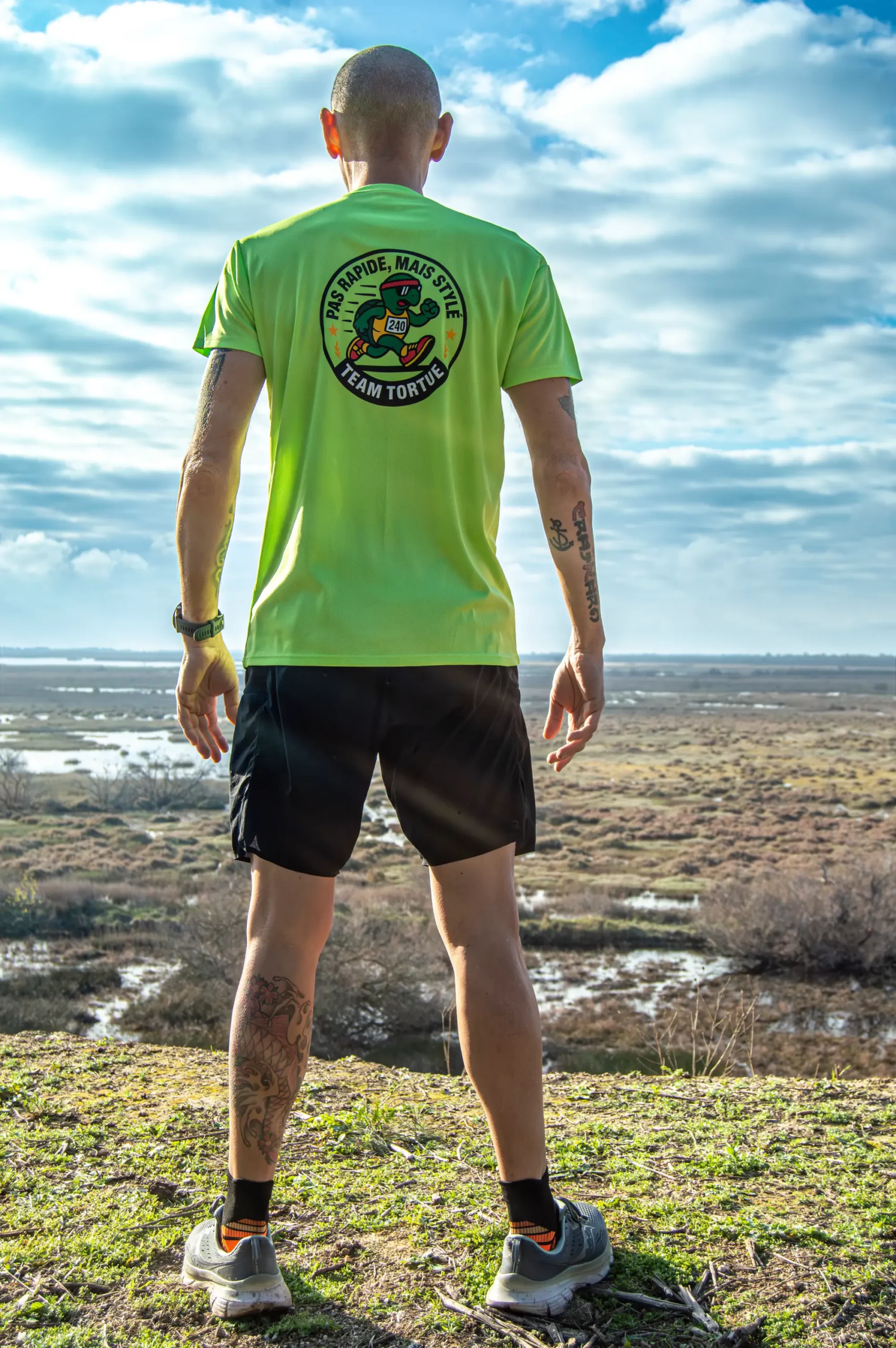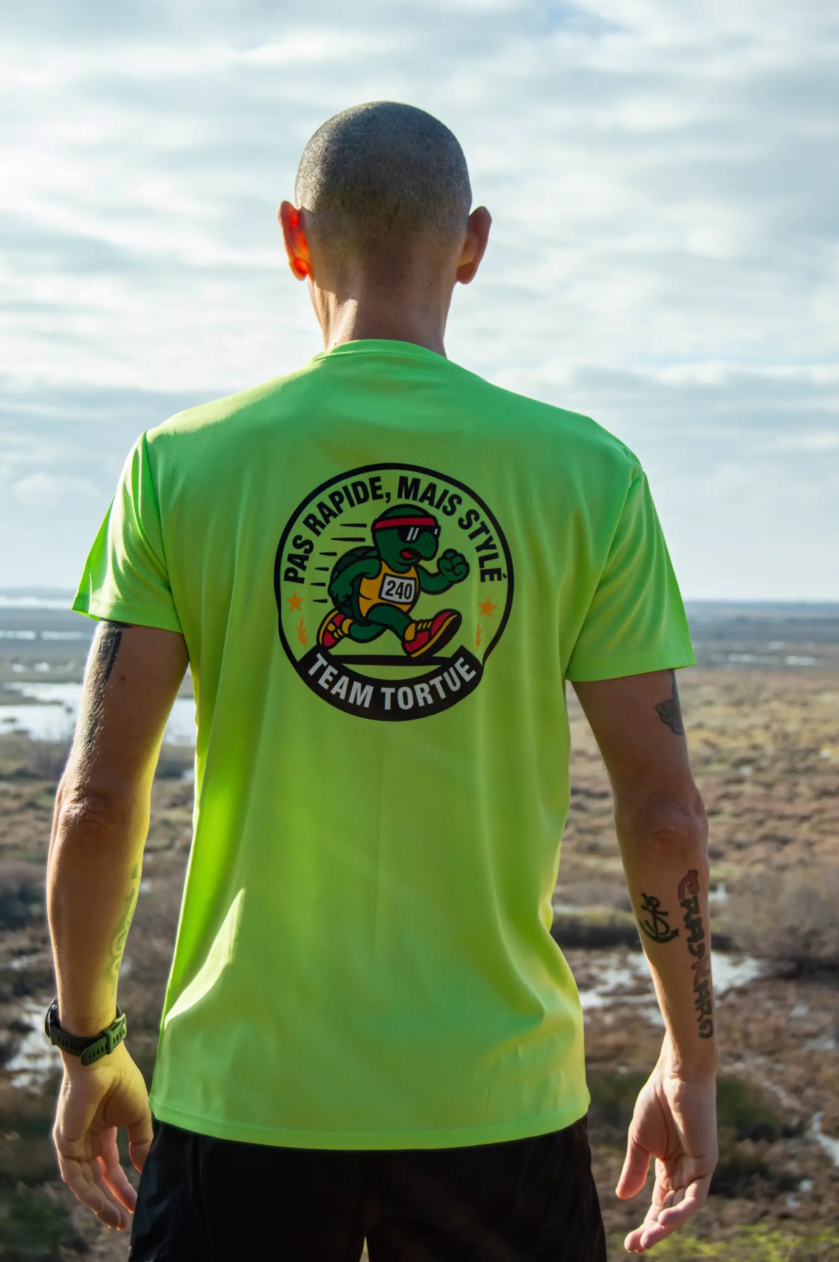 Pas rapide, mais stylé. Le t-shirt officiel Team Tortue, celui que vous croisez le plus souvent sur les routes. Léger, respirant et écoresponsable, il vous accompagne à l’entraînement comme au quotidien. Disponible toute l’année, toujours prêt à partir courir avec du sens.