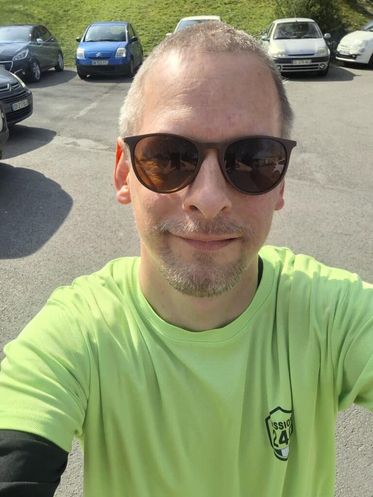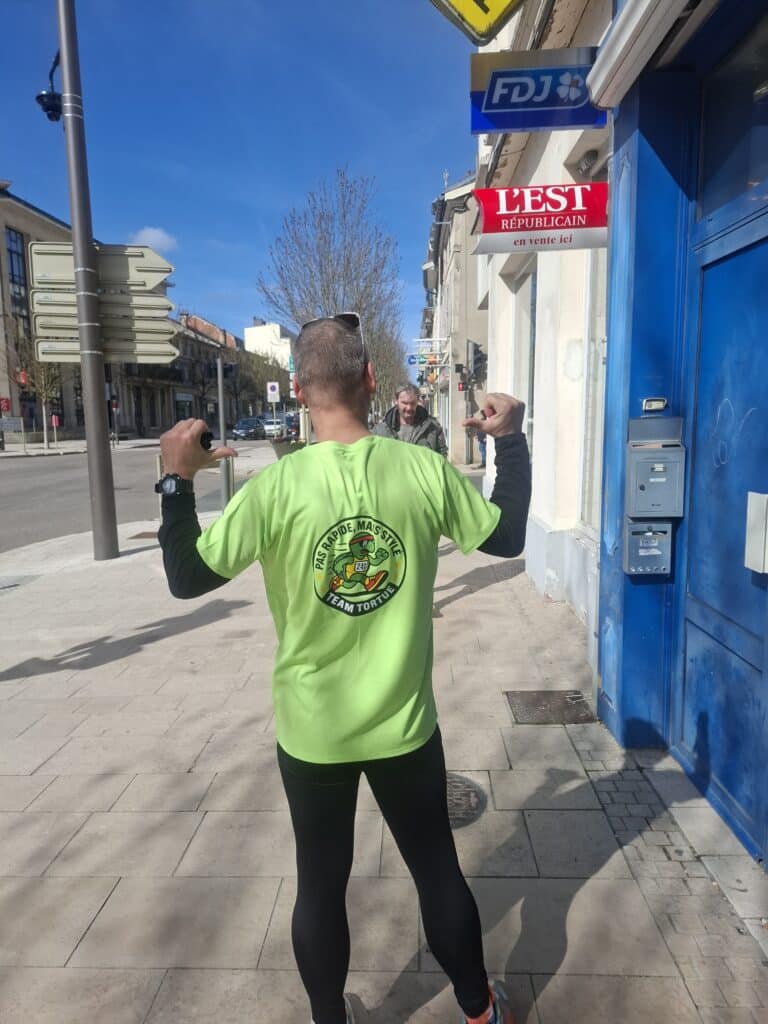 Loïc porte un t-shirt Mission 240 pendant une sortie running solidaire