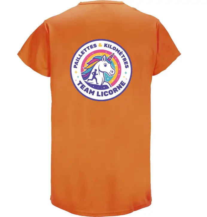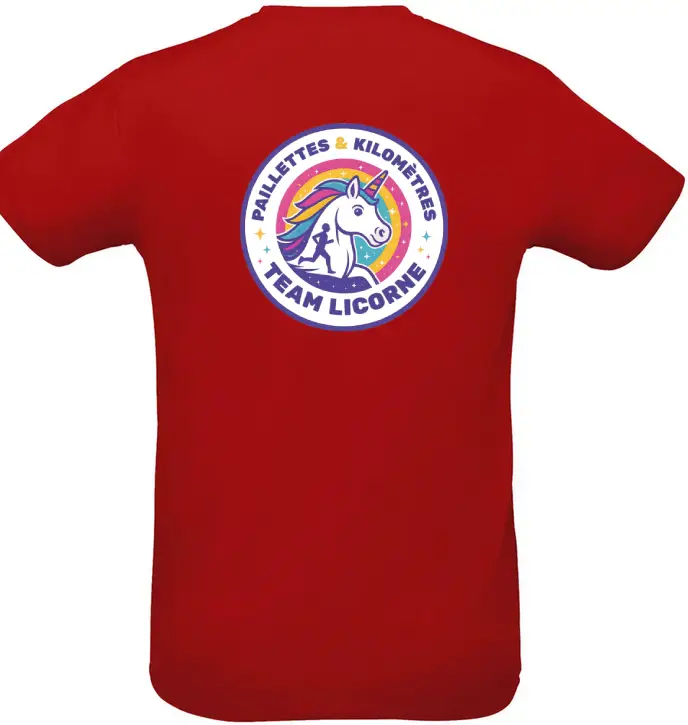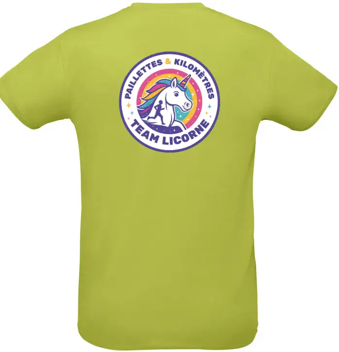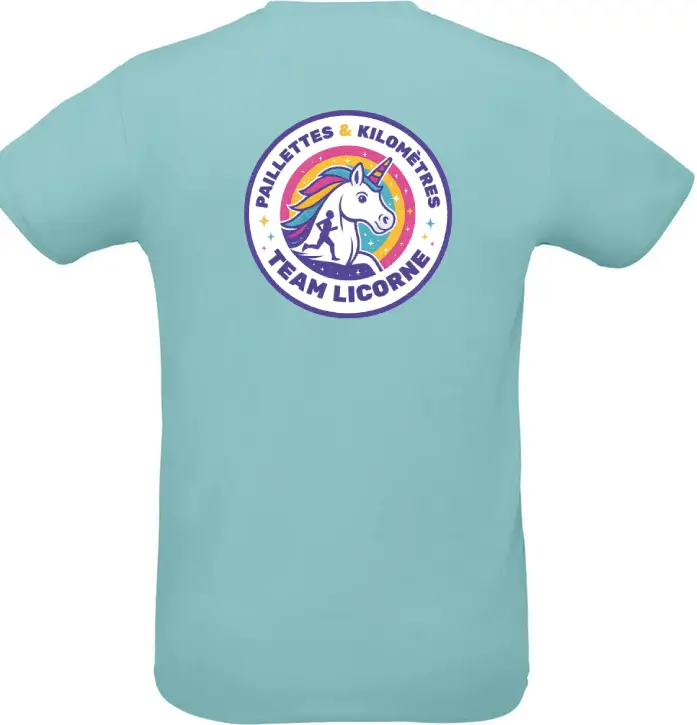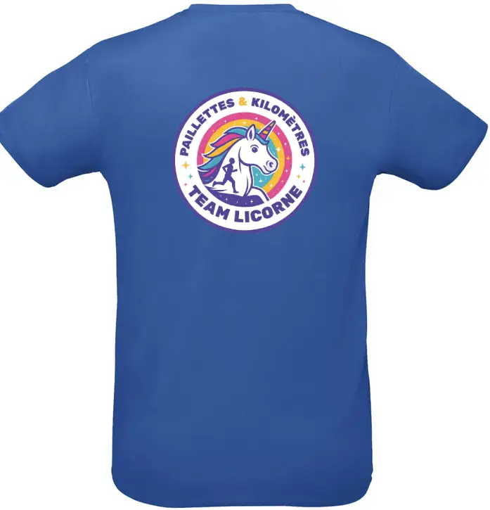 – Logo « Paillettes & Kilomètres – Team Licorne » imprimé dans le dos.