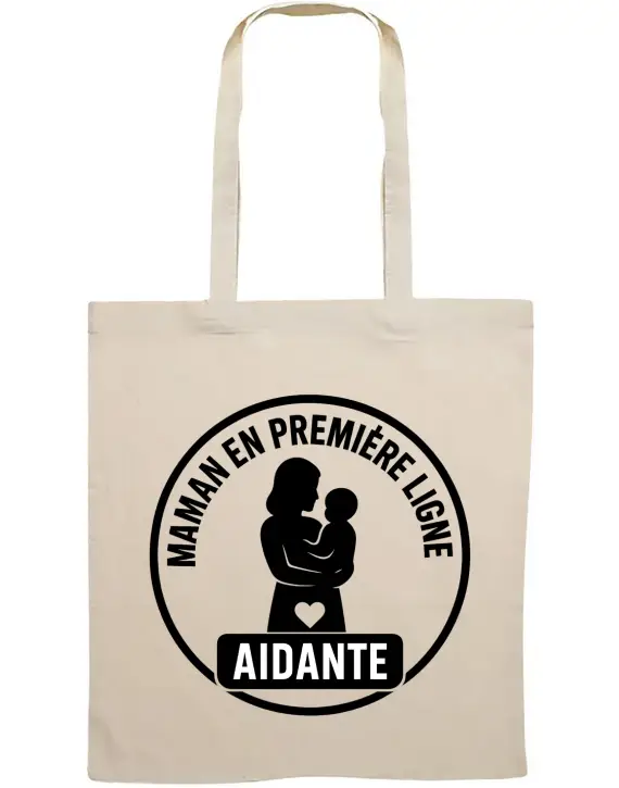 Sac shopping en coton naturel 140 g/m², solide et pratique, avec anses longues. Un hommage aux mamans aidantes qui sont en première ligne chaque jour.